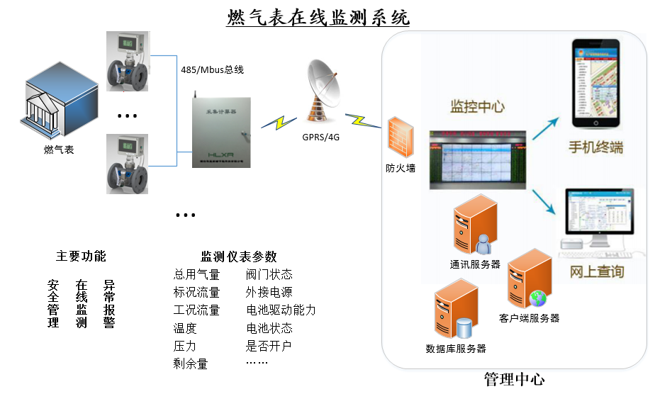 系統(tǒng)基于熱力公司網(wǎng)絡(luò)搭建能源站燃?xì)獗砑瓟?shù)據(jù)共享系統(tǒng)。所有大口徑燃?xì)獗沓韽S家數(shù)據(jù)匯集到集抄系統(tǒng)上,與各相關(guān)系統(tǒng)(web客戶端、通訊服務(wù)器端、燃?xì)忸A(yù)交費(fèi)系統(tǒng)、能源站控制系統(tǒng)等)共享數(shù)據(jù)庫資源,對天然氣大表的安全運(yùn)營管理、異常報(bào)警、剩余氣量等參數(shù)在線監(jiān)測,分析各能源站各時(shí)間段的用氣習(xí)慣,進(jìn)行氣耗分析,為氣源輸配提供有效的數(shù)據(jù)支撐,進(jìn)一步確保供氣安全,和更好的緩解高峰期流量不足的情況。